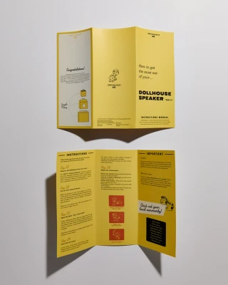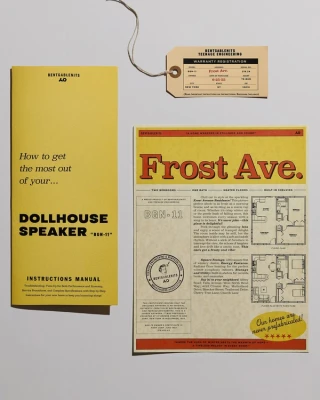 The visual system framed the art speaker as a home purchase rather than a piece of tech—complete with a wooden shipping crate, certificate of authenticity, warranty card, and instructional trifold. Inspired by midcentury toy packaging and real estate ephemera, the identity combined playful nostalgia with structure and precision, making the unboxing experience part of the narrative.