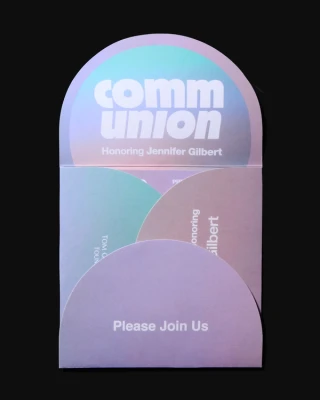 The new name, Comm-Union, reflects the event’s focus on connection and collaboration—core values shared by both the Academy and the creative community it nurtures. One of the key touchpoints was the invitation, designed as a single folded, origami-inspired piece that merged envelope and content into one. The format encouraged interaction, transforming a traditional mailer into something more sculptural and memorable.