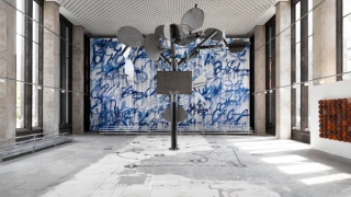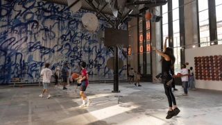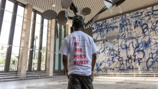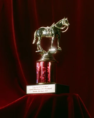 Creative direction, exhibition design, and production for HORSE, an interactive installation by Tyrrell Winston presented at 1001 Woodward in partnership with Library Street Collective. At the center stood a 25-foot “hoop tree” composed of 14 basketball hoops—recasting the court as a sculptural environment and a platform for public engagement. Framing the installation were two major works: Winston’s largest Punishment Painting to date, and a found object sculpture built from weathered basketballs—both meditations on memory, value, and cultural narrative.